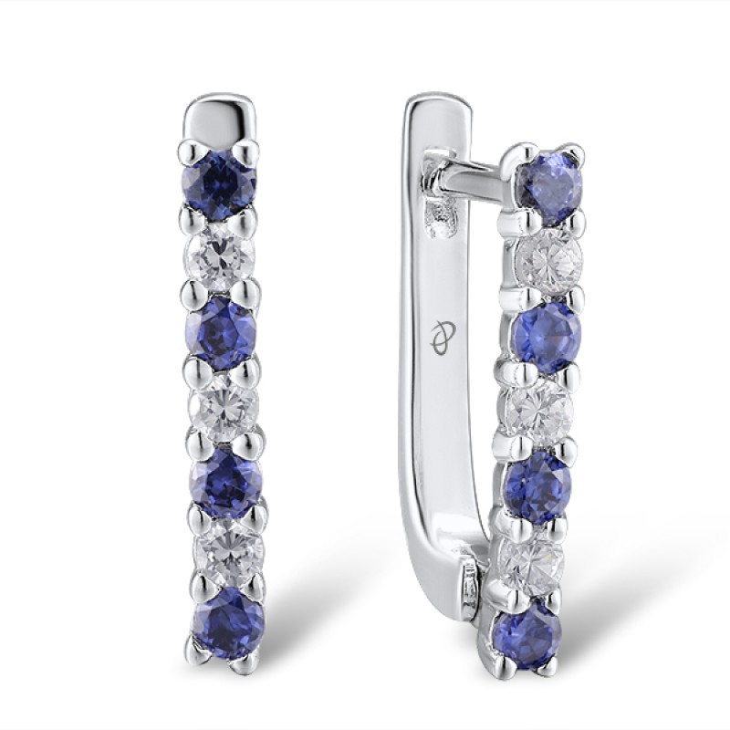 Sterling Silver Earrings Tanzanite Blue Cubic Zirconia,White Cubic Zirconia (E301127TBWZSL925)