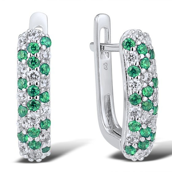 Sterling Silver Earrings White Cubic Zirconia,Green Spinel (E301128GSZSL925)