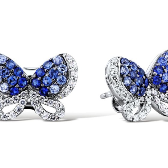 Sterling Silver Earrings Blue Nano Cubic Zirconia,White Cubic Zirconia (E301454CRSZSL925)