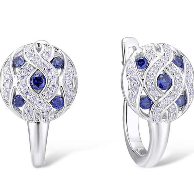 Sterling Silver Earrings Blue Nano Cubic Zirconia,White Cubic Zirconia (E301472CRSZSL925)