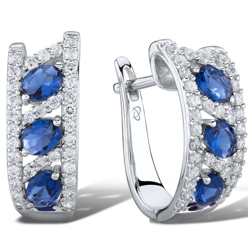 Sterling Silver Earrings Blue Glass,White Cubic Zirconia (E303051BLGZSL925)