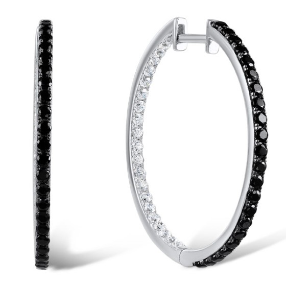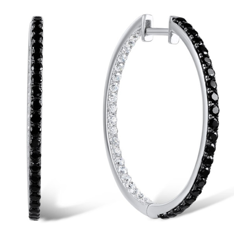 Sterling Silver Earrings White Cubic Zirconia,Black spinel (E303056BSNZSL925)