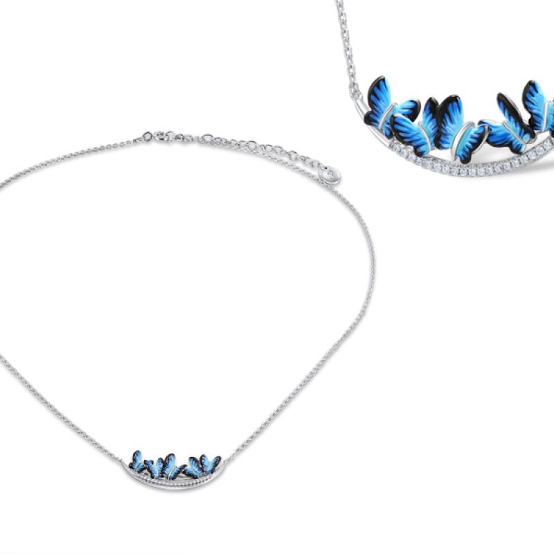 Sterling Silver Necklace Enamel,White Cubic Zirconia (N308015ENASL925)