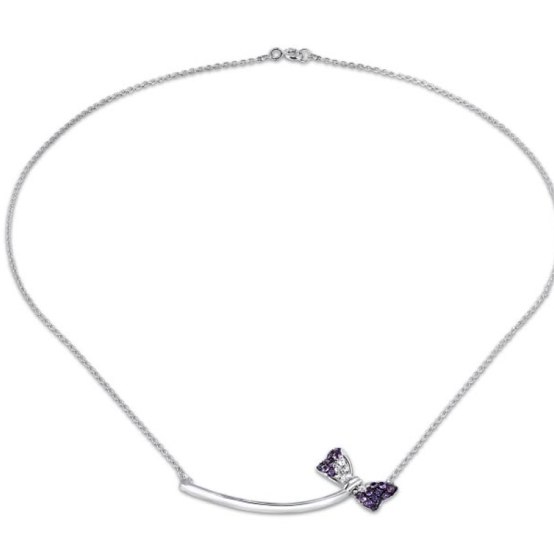 Sterling Silver w/ Black White Plating Necklace Amethyst,White Topaz (N310537AWTSK925)