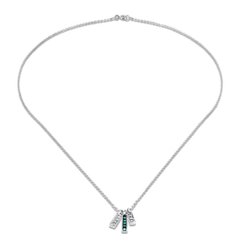 Sterling Silver w/ Black White Plating Necklace Created Emerald,Created White Sapphire (N310539CEWSK925)