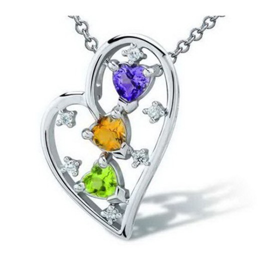 Sterling Silver Pendant Peridot,White Cubic Zirconia,Amethyst,Citrine (P301081MULSL925)