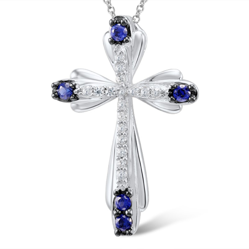 Sterling Silver w/ Black White Plating Pendant White Cubic Zirconia,Blue Nano Cubic Zirconia (P305154ABZZSK925)