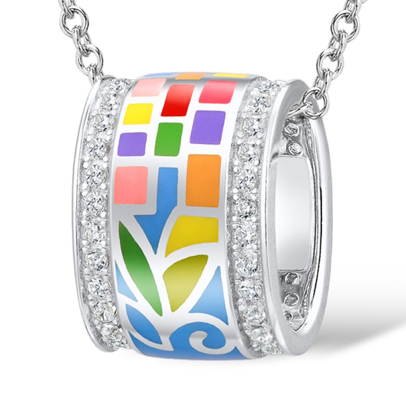 Sterling Silver Pendant Enamel,White Cubic Zirconia (P305487SENASL925)