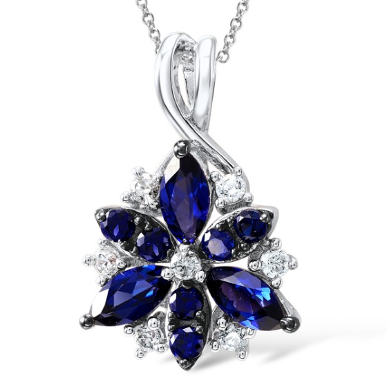 Sterling Silver w/ Black White Plating Pendant White Cubic Zirconia,Blue Nano Cubic Zirconia (P306861BZZSK925)