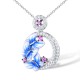 Sterling Silver w/ Black White Plating Pendant Enamel,White Cubic Zirconia,Created Pink Sapphire (P308012ENA1SK925)