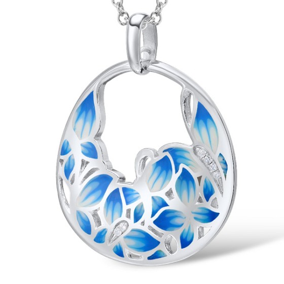 Sterling Silver Pendant Enamel,White Cubic Zirconia (P308604ENASL925)