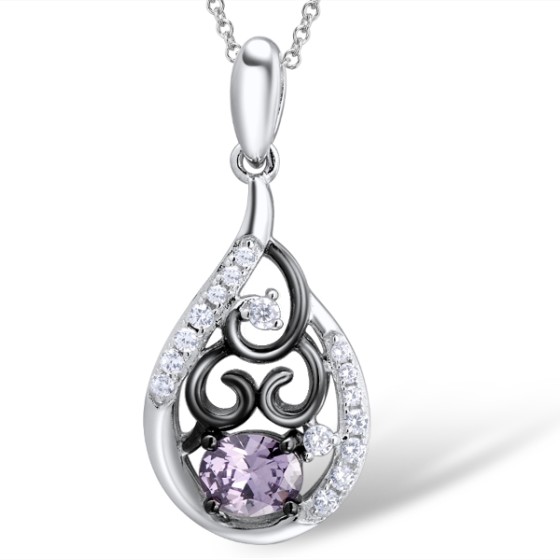 Sterling Silver w/ Black White Plating Pendant Amethyst Cubic Zirconia,White Cubic Zirconia (P309006AWZSK925)