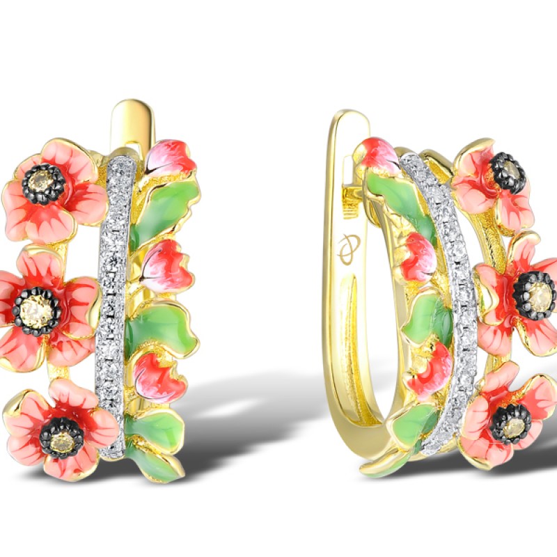 Sterling Silver w/ Yellow Black White Plating Earrings Enamel,White Cubic Zirconia,Yellow Cubic Zirconia (E312237ENASZ925)