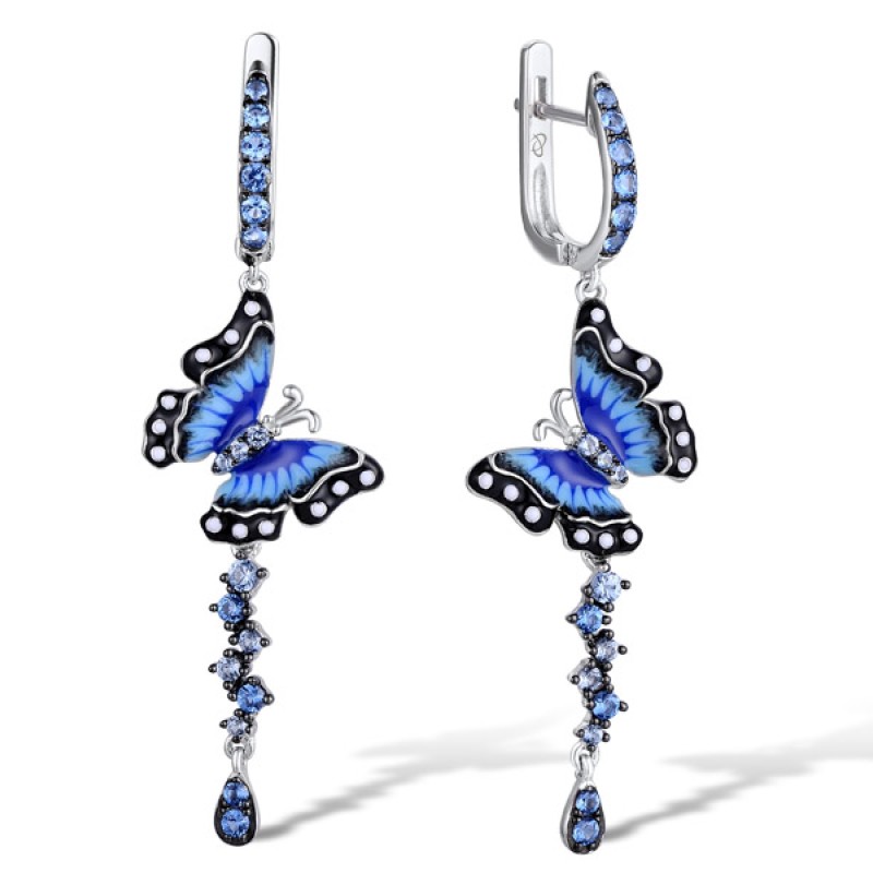 Sterling Silver w/ Black White Plating Earrings Blue Spinel,Enamel (E310925ENASK925)