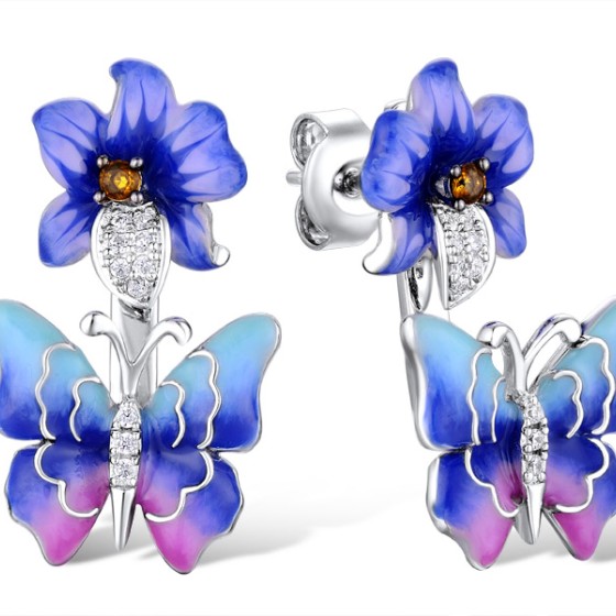 Sterling Silver w/ Black White Plating Earrings Yellow Nano Cubic Zirconia (Ci,Enamel,White Cubic Zirconia (E310832ENASK925)