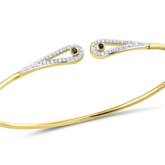 Sterling Silver w/ IONIC YELLOW PLATING Bangle Created Sapphire,Created white sapphire (G310557CSWSP925)