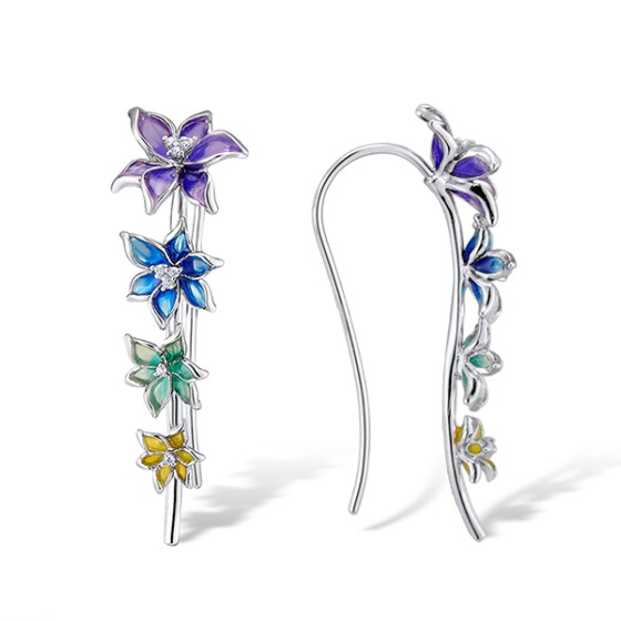 Sterling Silver Earrings Enamel,White Cubic Zirconia (E309681ENA1SL925)
