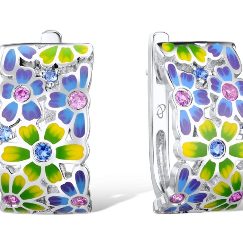 Sterling Silver Earrings Created Pink Sapphire,Enamel,Blue Spinel (E309543ENASL925)