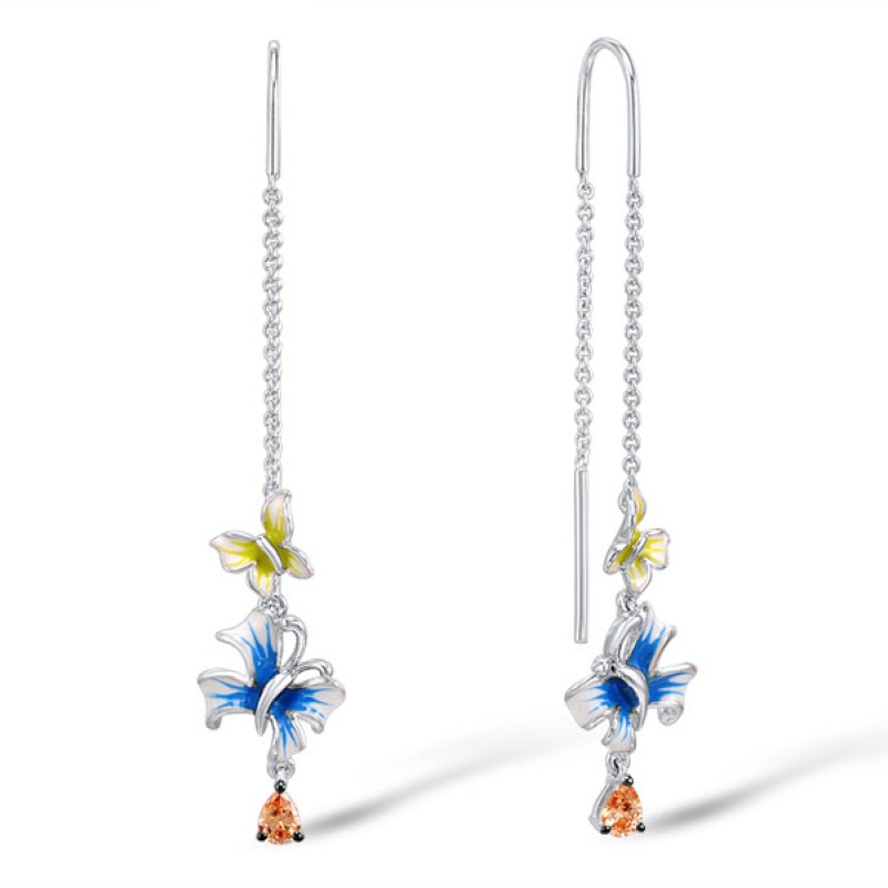 Sterling Silver w/ Black White Plating Earrings Champagne Cubic Zirconia,Enamel (E309177ENASK925)