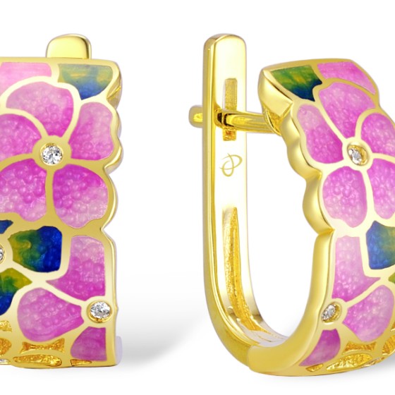 Sterling Silver w/ Yellow Plating Earrings Enamel,White Cubic Zirconia (E308749ENA1SY925)