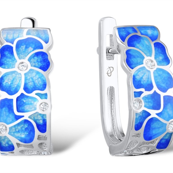 Sterling Silver Earrings Enamel,White Cubic Zirconia (E308749ENA2SL925)