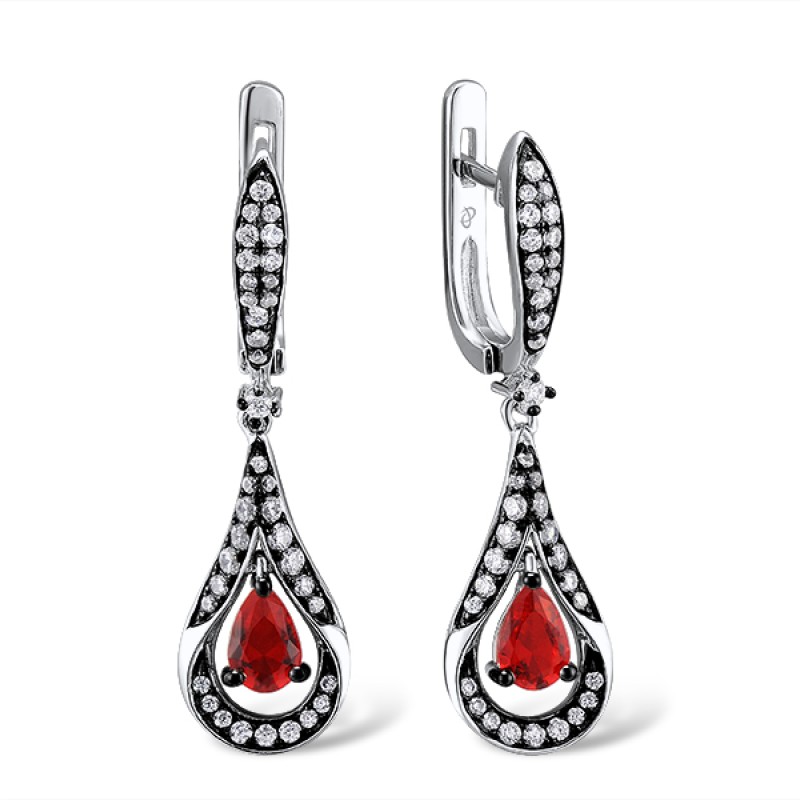 Sterling Silver w/ Black Plating Earrings White Cubic Zirconia,Red Glass (E308589REGZSK1925)