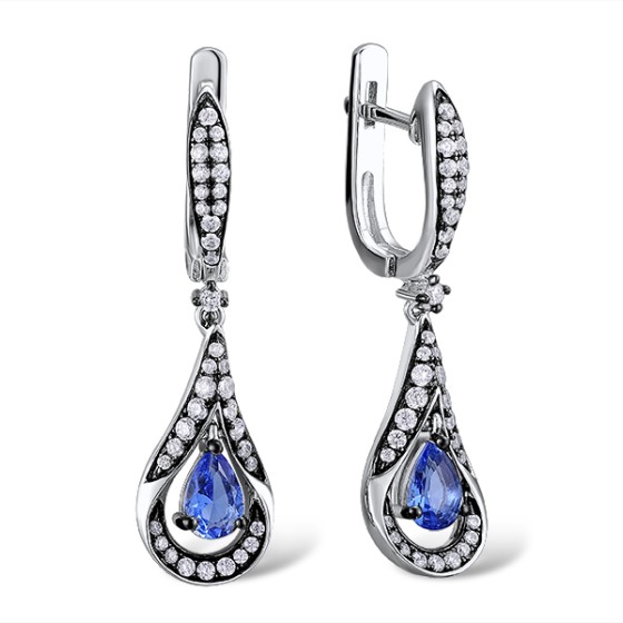 Sterling Silver w/ Black Plating Earrings Blue Glass,White Cubic Zirconia (E308589BLGZSK1925)
