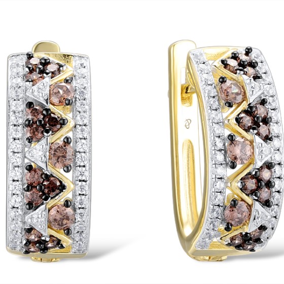 Sterling Silver w/ Yellow Black White Plating Earrings Chocolate CZ,White Cubic Zirconia (E308458CHWZSZ925)