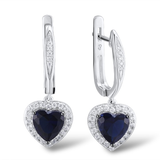 Sterling Silver w/ Black White Plating Earrings Blue Glass,White Cubic Zirconia (E308367BLGZSK925)