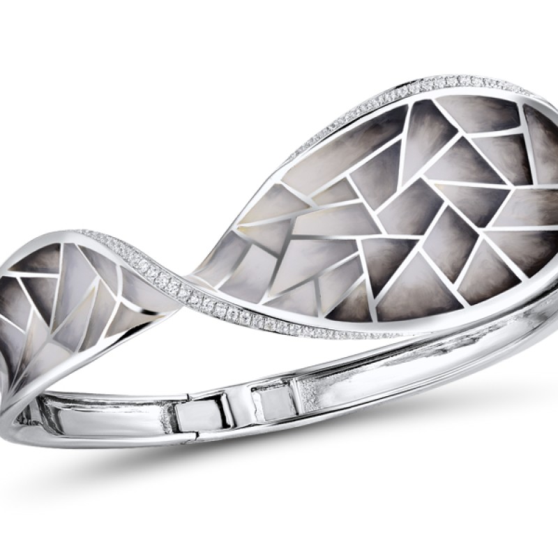 Sterling Silver Bangle Enamel,White Cubic Zirconia (G307957ENA2SL925)