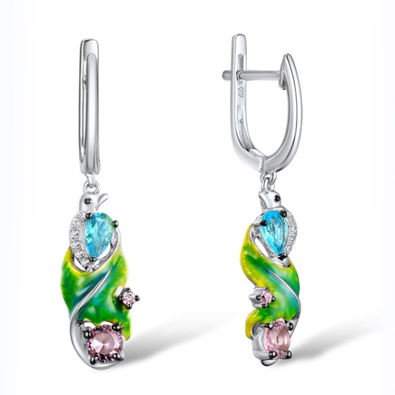 - Blue Glass 2pc 0.280ct ,Enamel,White Cubic Zirconia 16pc 1.054ct