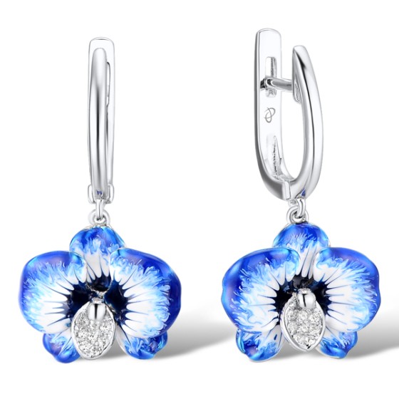 Sterling Silver Earrings Enamel,White Cubic Zirconia (E307460ENA1SL925)