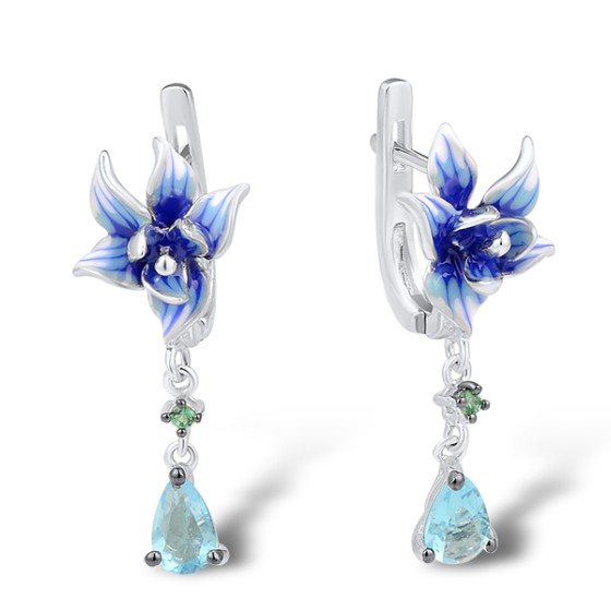 Sterling Silver w/ Black White Plating Earrings Enamel,Green Spinel,Blue Glass (E307327ENA1SK925)
