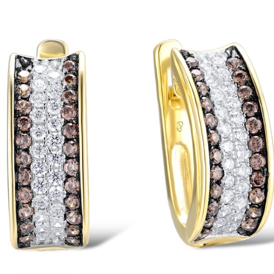 Sterling Silver w/ Yellow Black White Plating Earrings Chocolate CZ,White Cubic Zirconia (E307293CHWZSZ925)