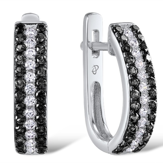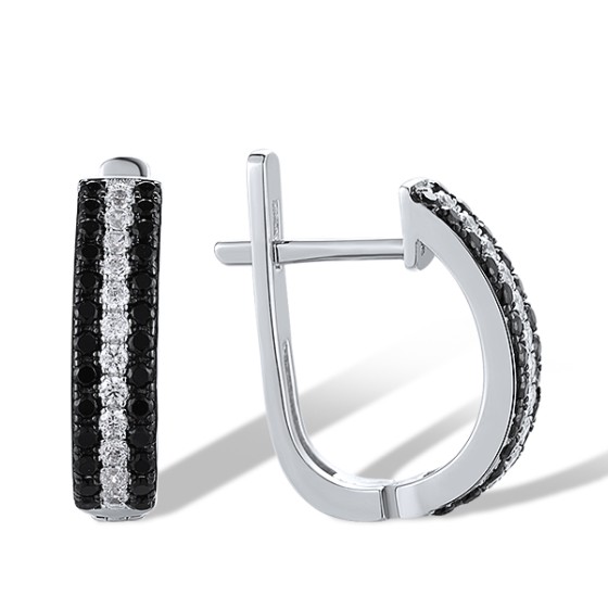 Sterling Silver w/ Black White Plating Earrings White Cubic Zirconia,Black spinel (E307289BSNZSK925)