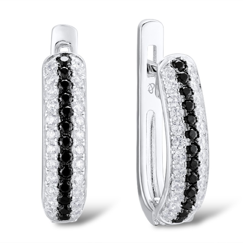 Sterling Silver w/ Black White Plating Earrings White Cubic Zirconia,Black spinel (E307288BSNZSK925)