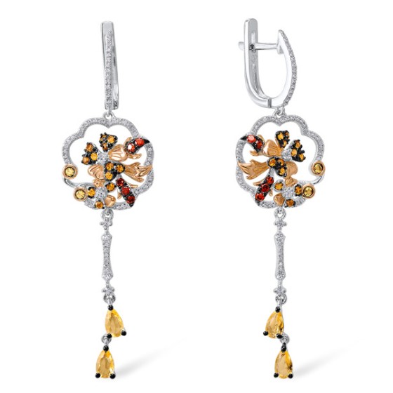Sterling Silver Earrings Citrine,Garnet Cubic Zirconia,White Cubic Zirconia,Yellow Glass,Yellow Nano Cubic Zirconia (Ci (E307263MULSL925)
