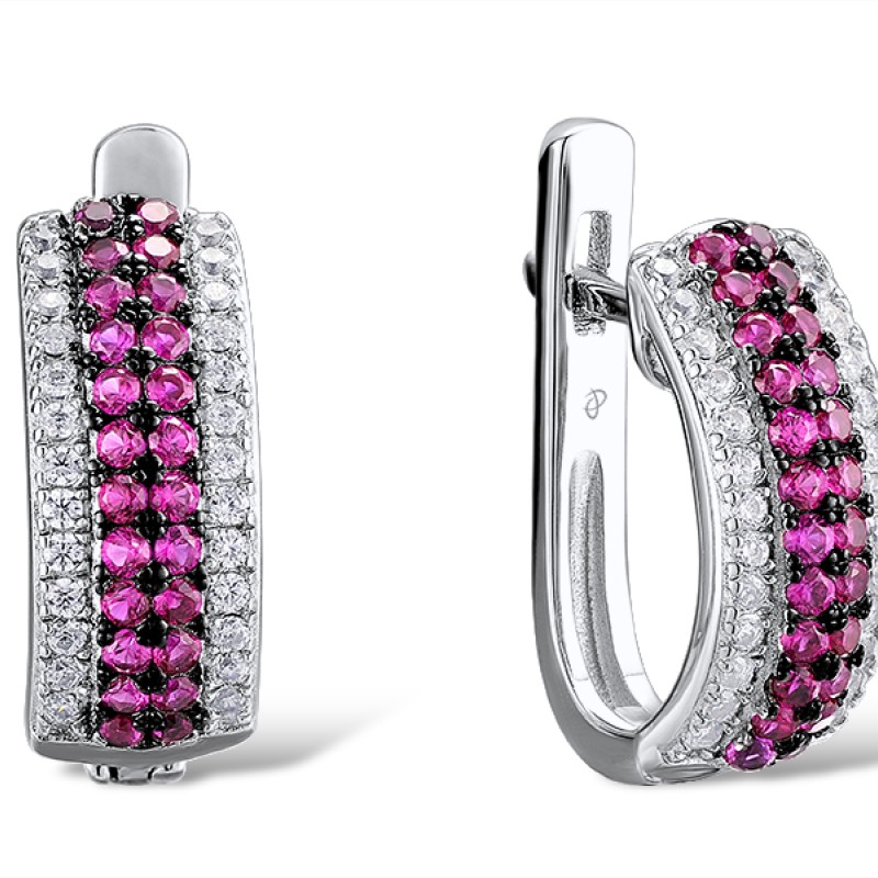 Sterling Silver w/ Black White Plating Earrings Created Ruby,White Cubic Zirconia (E307197CRZSK925)