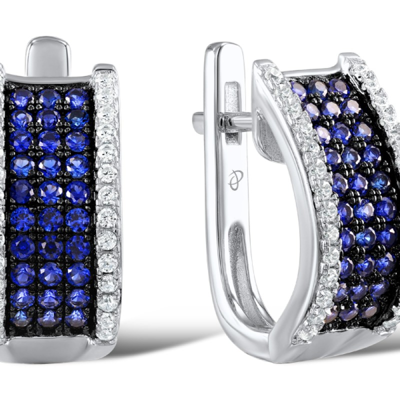 Sterling Silver w/ Black White Plating Earrings Blue Nano Cubic Zirconia,White Cubic Zirconia (E307185BZZSK925)