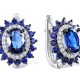 Sterling Silver w/ Black White Plating Earrings Blue Glass,Blue Nano Cubic Zirconia,White Cubic Zirconia (E307093BLNZSK925)