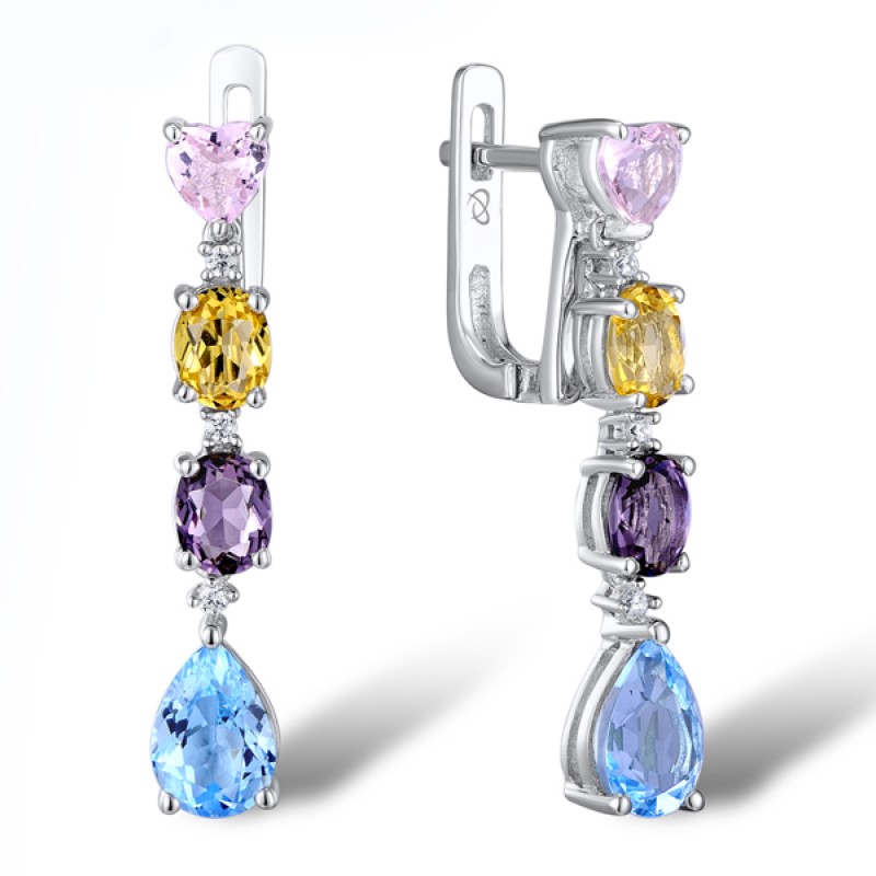 Sterling Silver Earrings White Cubic Zirconia,Blue Glass,Yellow Glass,Pink Glass,Purple Glass (E307083MUL1SL925)