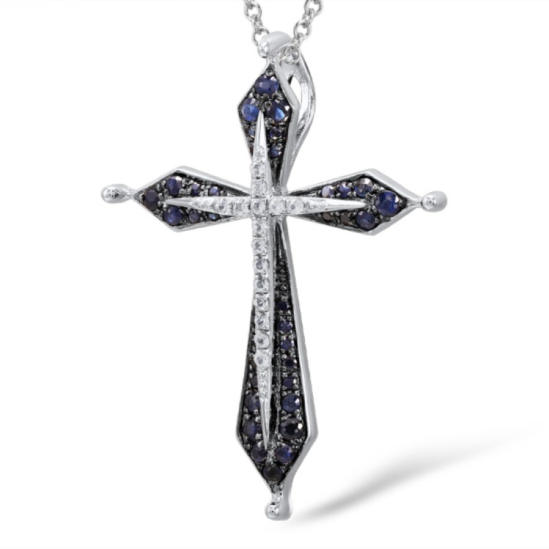 Sterling Silver w/ Black White Plating Pendant White Cubic Zirconia,Black spinel (P307066BSNZSK925)