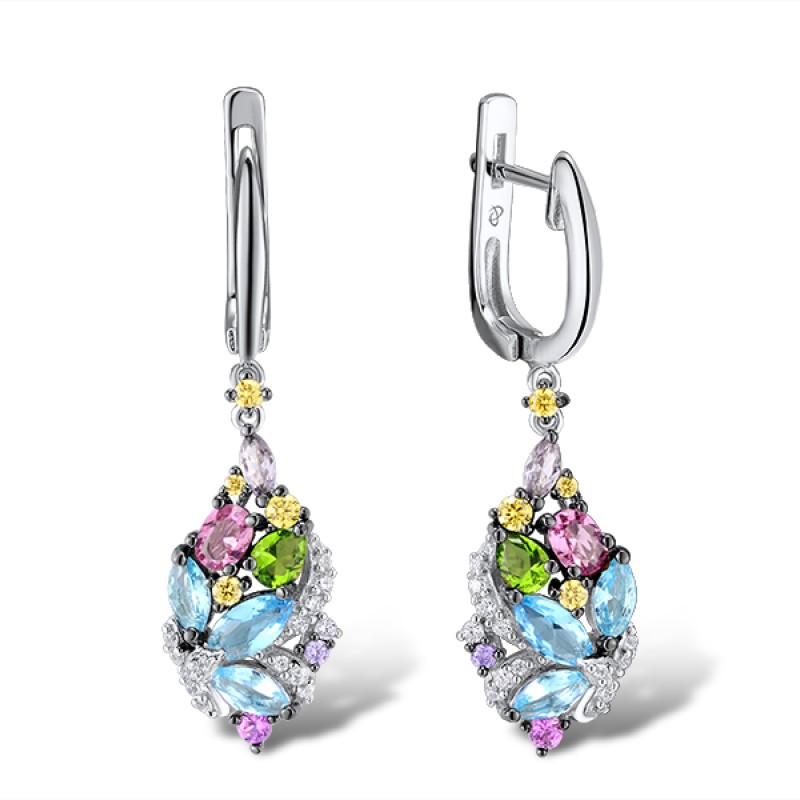 Sterling Silver w/ Black White Plating Earrings Purple Glass,Created Pink Sapphire,White Cubic Zirconia,Green Glass,Amethyst Cubic Zirconia,Yellow Cubic Zirconia,Pink Glass,Blue Glass (E306988MUL2SK925)