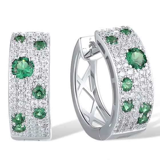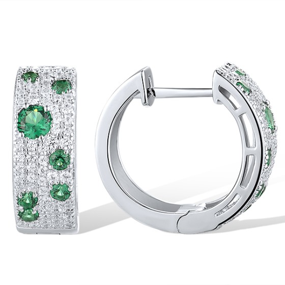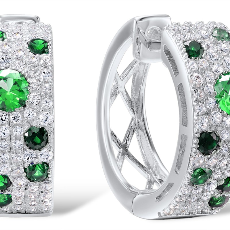 Sterling Silver Earrings Green Spinel,White Cubic Zirconia (E306887GSZSL925)