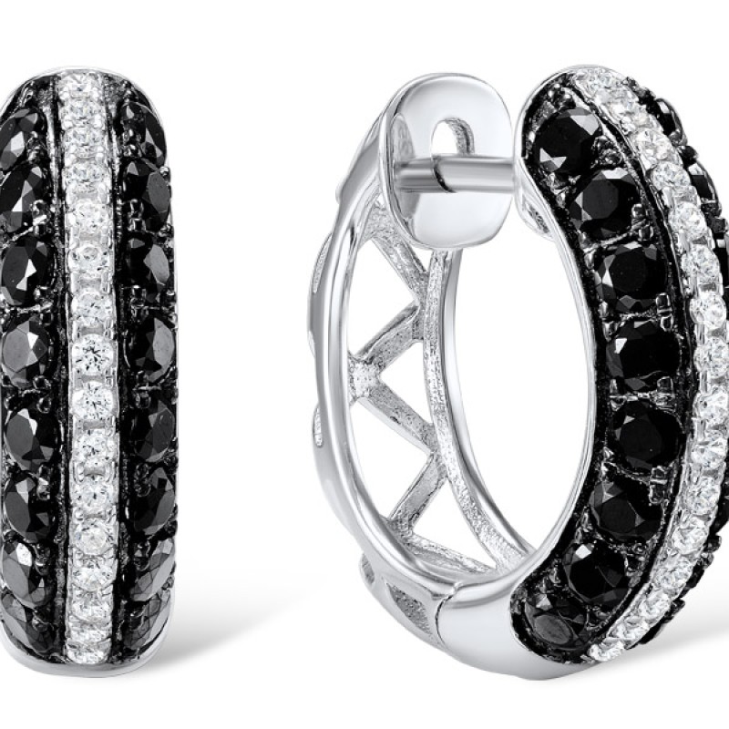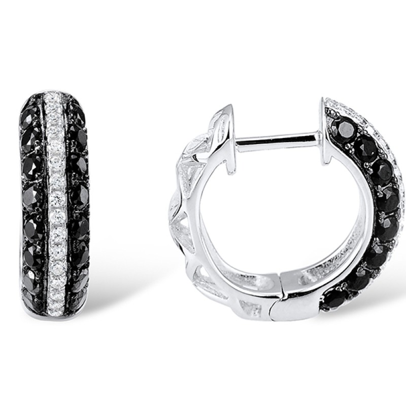 Sterling Silver w/ Black White Plating Earrings White Cubic Zirconia,Black spinel (E306865BSNZSK925)