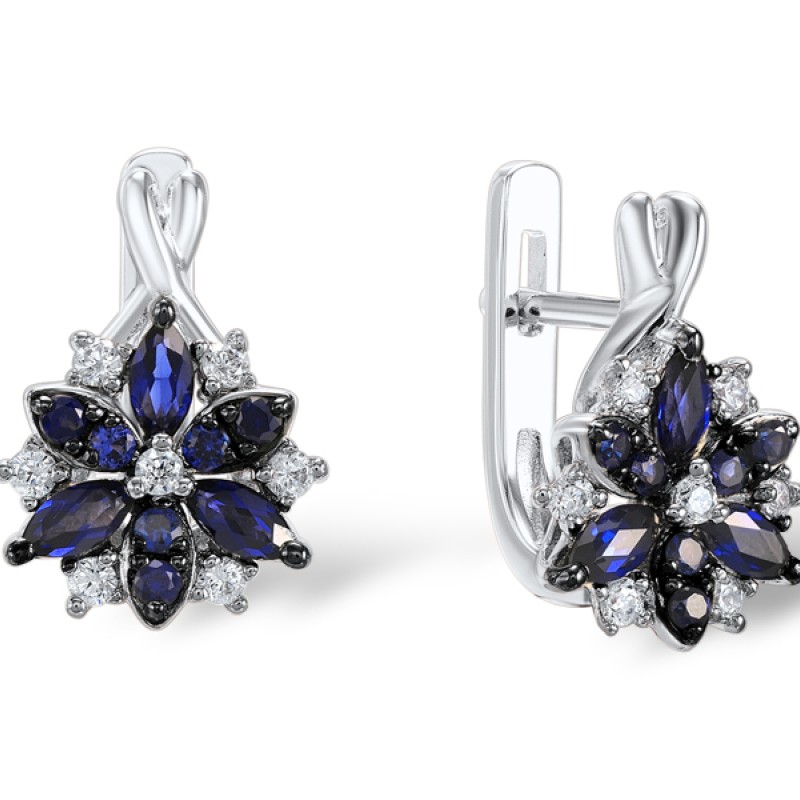 Sterling Silver w/ Black White Plating Earrings Blue Nano Cubic Zirconia,White Cubic Zirconia (E306861BZZSK925)