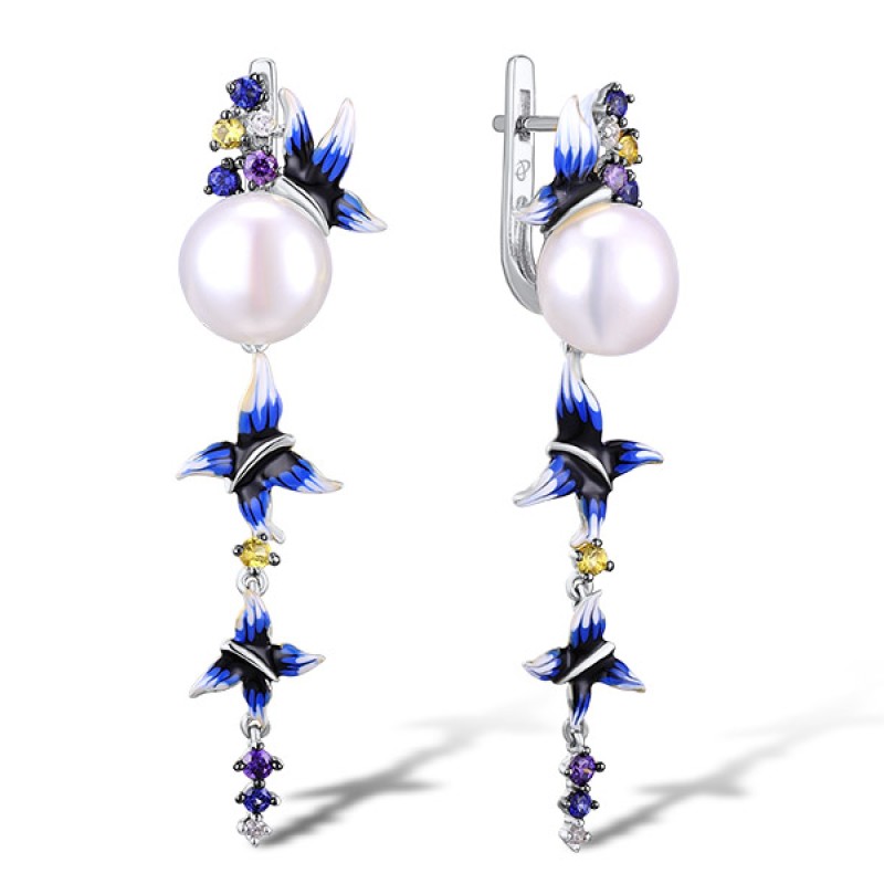 Sterling Silver w/ Black White Plating Earrings White Cubic Zirconia,Blue Nano Cubic Zirconia,Yellow Nano Cubic Zirconia (Ci,Enamel,Fresh Water White Pearl,Amethyst Cubic Zirconia (E306720ENASK925)