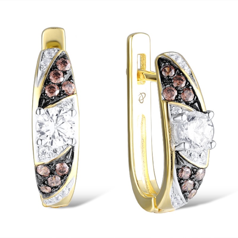 Sterling Silver w/ Yellow Black White Plating Earrings White Cubic Zirconia,Chocolate CZ (E306058SCHWZSZ925)