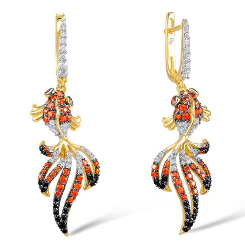 Sterling Silver w/ Yellow Black White Plating Earrings Black spinel,Orange Zircon,White Cubic Zirconia (E305569BSRZSZ925)