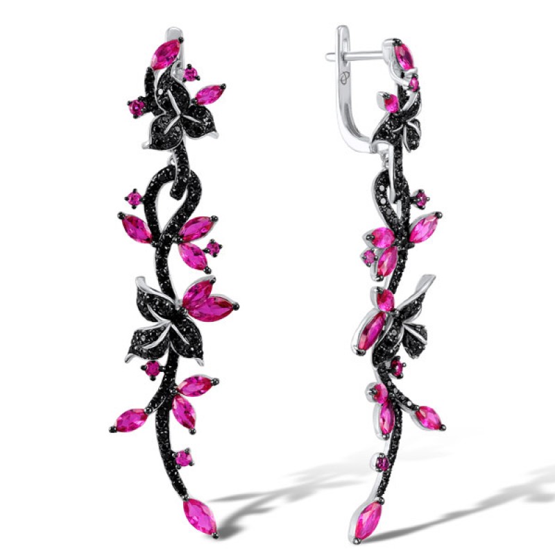 Sterling Silver Earrings Black spinel,Created Ruby (E305288CRBSL925)